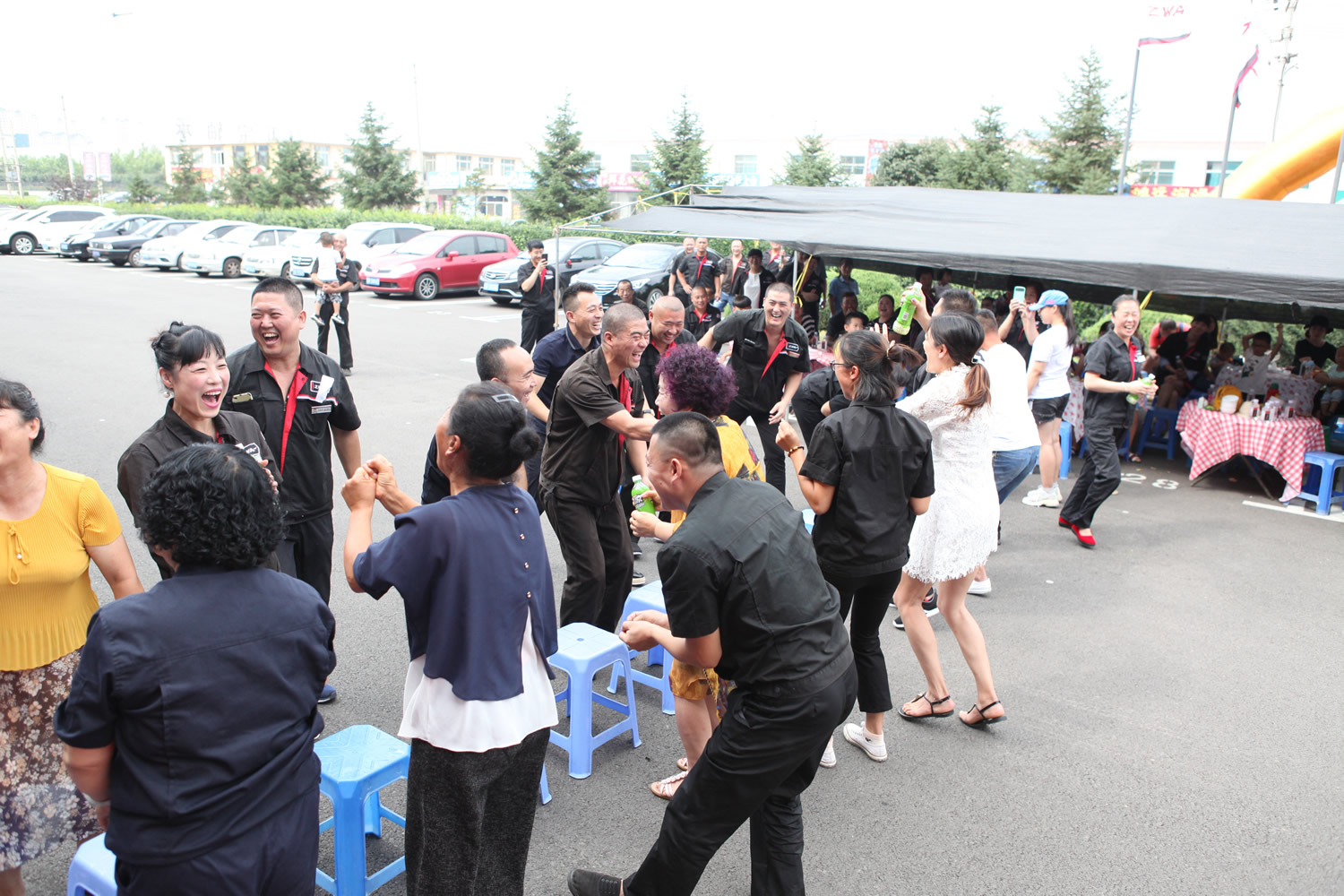 活动现场为家属们准备了游戏环节:抢凳子、你来比划我来猜、抢饮料、背靠背夹气球跑等娱乐项目,气氛非常热烈。